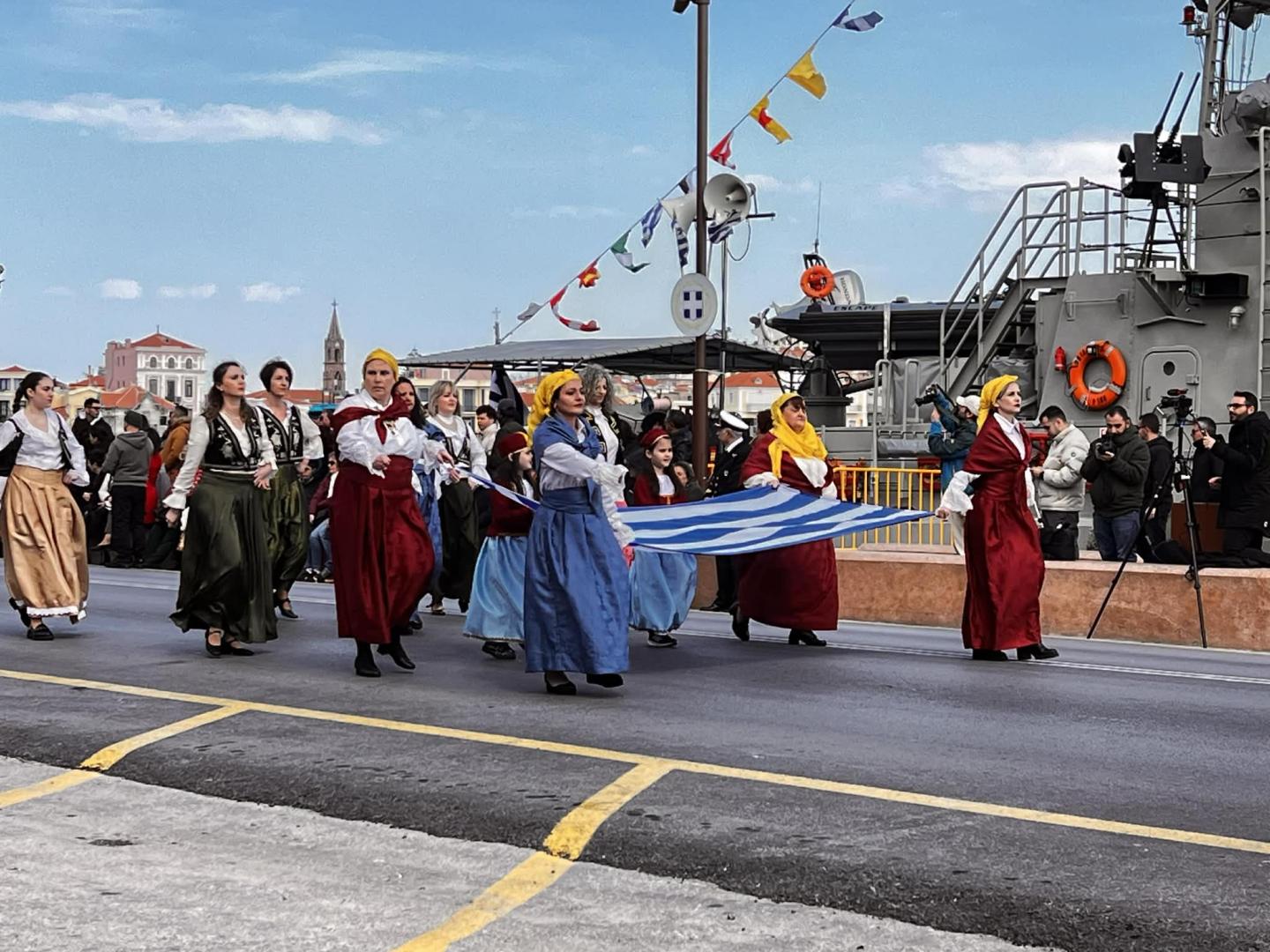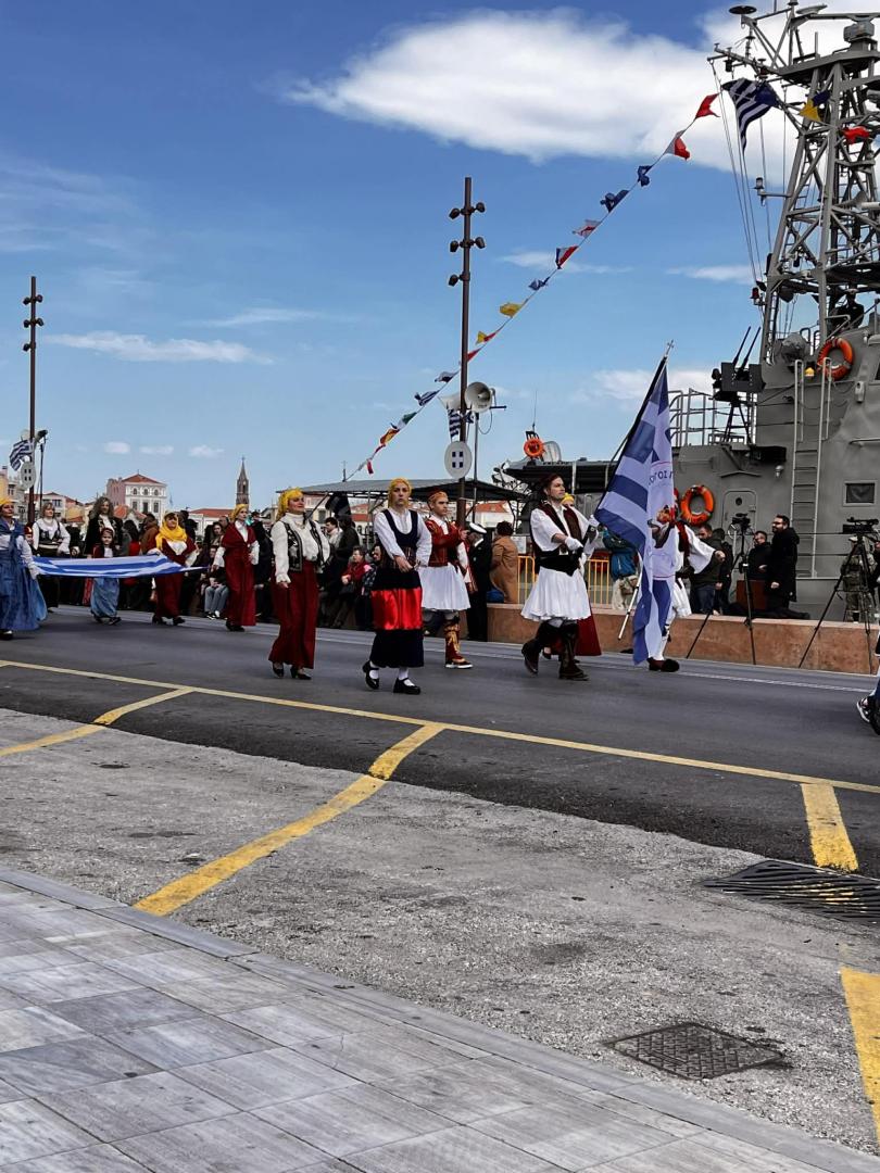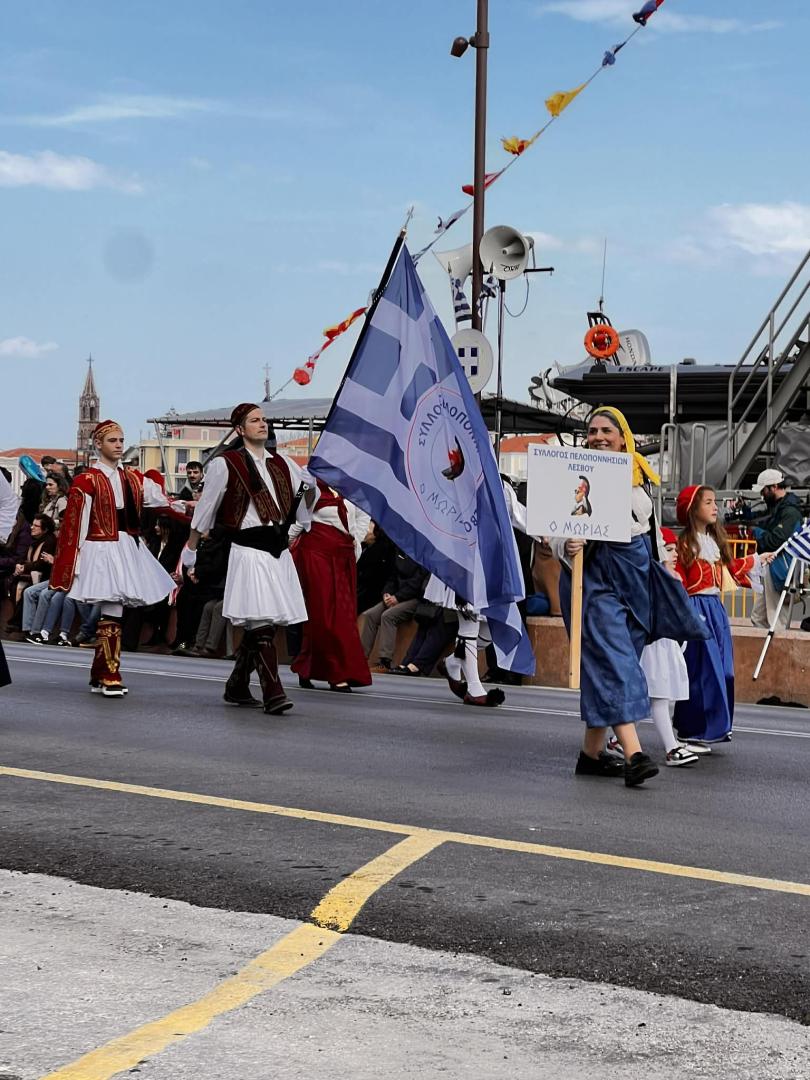 Οι παραδοσιακές φορεσιές «ζωντάνεψαν» την ιστορία. Ο Σύλλογος Πελοποννησίων Λέσβου «Ο Μωριάς» έδωσε δυναμικό παρών, φέρνοντας στην προκυμαία κάτι περισσότερο από εικόνες: έφερε μνήμη. Έφερε το βάρος και το μεγαλείο μιας Πελοποννήσου που άναψε τη σπίθα της Επανάστασης και συνεχίζει να φωτίζει το σήμερα.