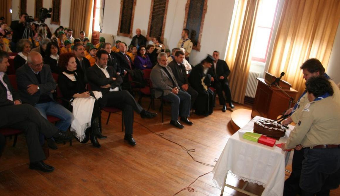Η μεγάλη αίθουσα τελετών του Πειραματικού Λυκείου Μυτιλήνης αποδείχθηκε τελικά πολύ μικρή να χωρέσει τα Λυκόπουλα, τους Προσκόπους και τους Ανιχνευτές, τους βαθμοφόρους τους αλλά και όλους τους φίλους της Προσκοπικής Κίνησης στο νησί που μαζί με εκπροσώπους της Εκκλησίας, των τοπικών πολιτικών και άλλων αρχών έκοψαν χθες Κυριακή τη βασιλόπιτα τους. Και συμμετείχαν σε μια γιορτή Δημοκρατίας για την προσκοπική Κίνηση. Την παράδοση της Περιφέρειας των προσκόπων από το απερχόμενο στο νέο Περιφερειακό Έφορο του νησιού. Ας σημειωθεί ότι η εκδήλωση πραγματοποιήθηκε για μια ακόμα φορά σε αυτήν την αίθουσα που είναι στενά συνυφασμένη με την ιστορία της Προσκοπικής Κίνησης στη Λέσβο μια και εκεί πριν από 101 χρόνια, στις 20 Ιανουαρίου 1913 ο Υποπλοίαρχος Κωνσταντίνος Μελάς, πρώτος πολιτικός και στρατιωτικός Διοικητής της ελεύθερης Λέσβου, μίλησε για τον Προσκοπισμό και παρουσίασε τον πρώτο Πρόσκοπο του νησιού. Γεγονός που αποτέλεσε την αφορμή για την δημιουργία της πρώτης Ομάδας προσκόπων στη Μυτιλήνη.
