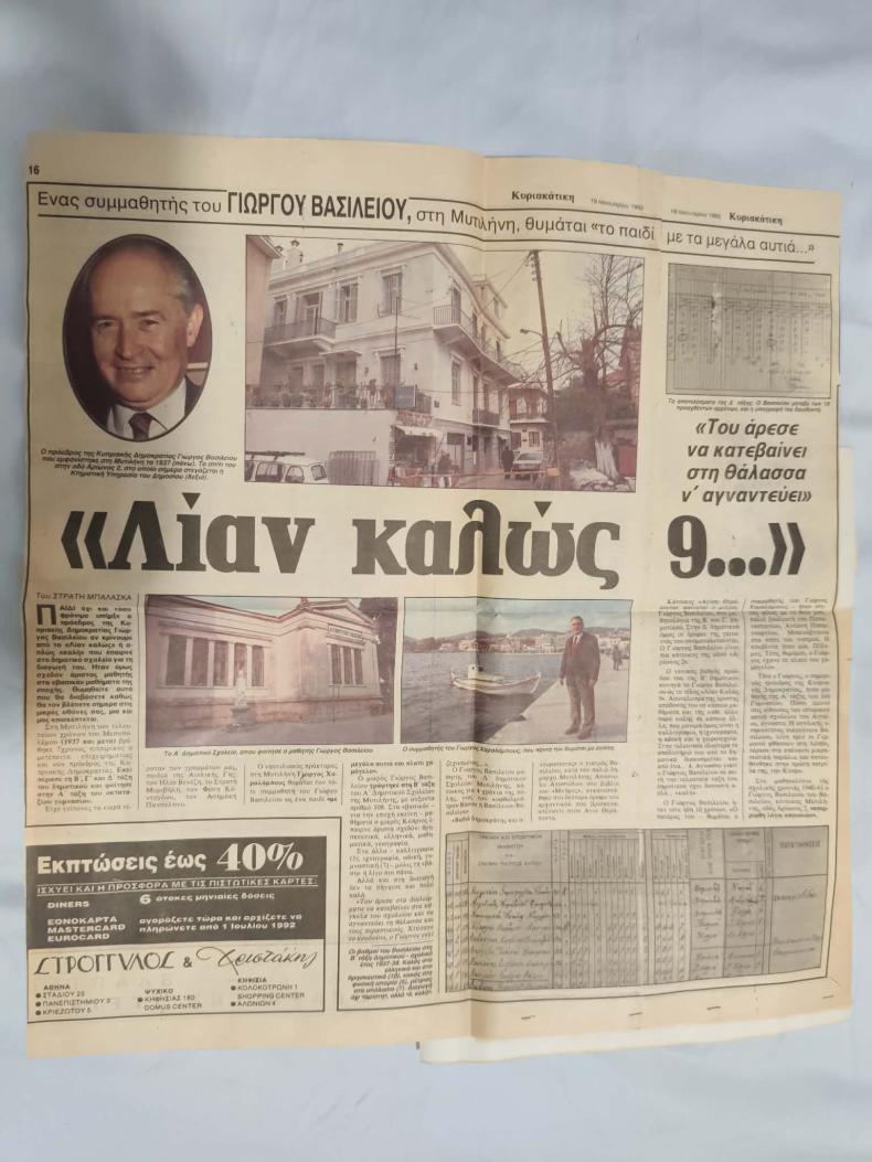 «Τον υποδέχτηκα» με ένα πρωτοσέλιδο ρεπορτάζ μου στην «Κυριακάτικη Ελευθεροτυπία» τότε, με τους βαθμούς του στο Α Δημοτικό Σχολείο Μυτιλήνης.