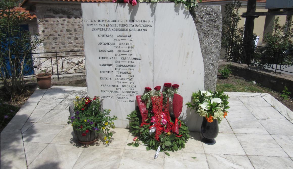 Τιμάμε τους νεκρούς του Σικάγου, της πρώτης αιματοβαμμένης Πρωτομαγιάς στην Ελλάδα το 1924, το Μάη του '36, τους 200 κομμουνιστές της Καισαριανής. Τους νεκρούς της τάξης μας. Ανάμεσά τους και οι Μανταμαδιώτες: