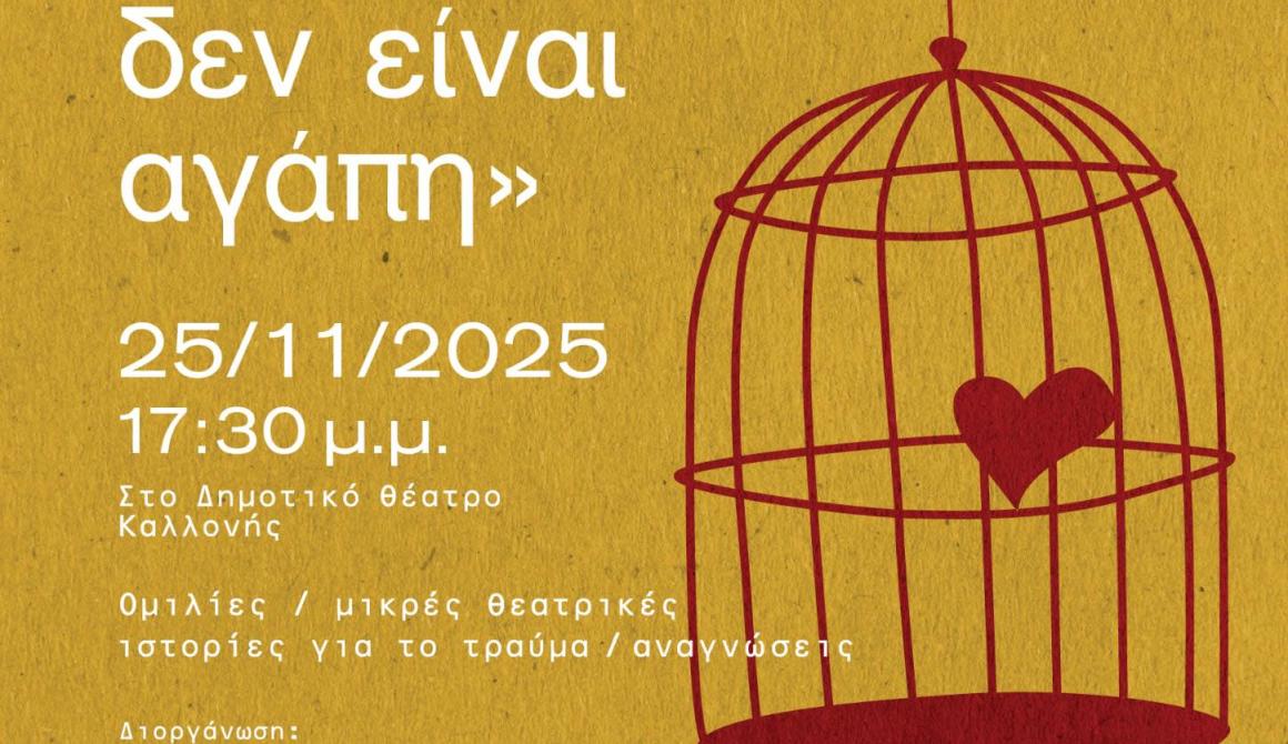 Η εκδήλωση, η οποία έχει ως κεντρικό άξονα το τραύμα και τη διαδικασία αντιμετώπισης και υπέρβασής του, θα πραγματοποιηθεί την Τρίτη 25 Νοεμβρίου στις 5.30 το απόγευμα, στο Δημοτικό Θέατρο Καλλονής.