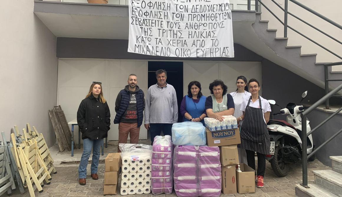 Σήμερα, Τετάρτη 16 Νοέμβρη, αντιπροσωπεία του Εργατικού Κέντρου Λέσβου, με επικεφαλής τον αντιπρόεδρο του ΔΣ Γιάννη Ζαφειρίου, και την Στέλλα Γανωτή μέλος του ΔΣ του Σωματείου Επισιτισμού-Τουρισμού, παρέδωσαν είδη πρώτης ανάγκης στο «ΜΙΧΑΛΕΛΙΟ» οίκο ευγηρίας στο Πλωμάρι.