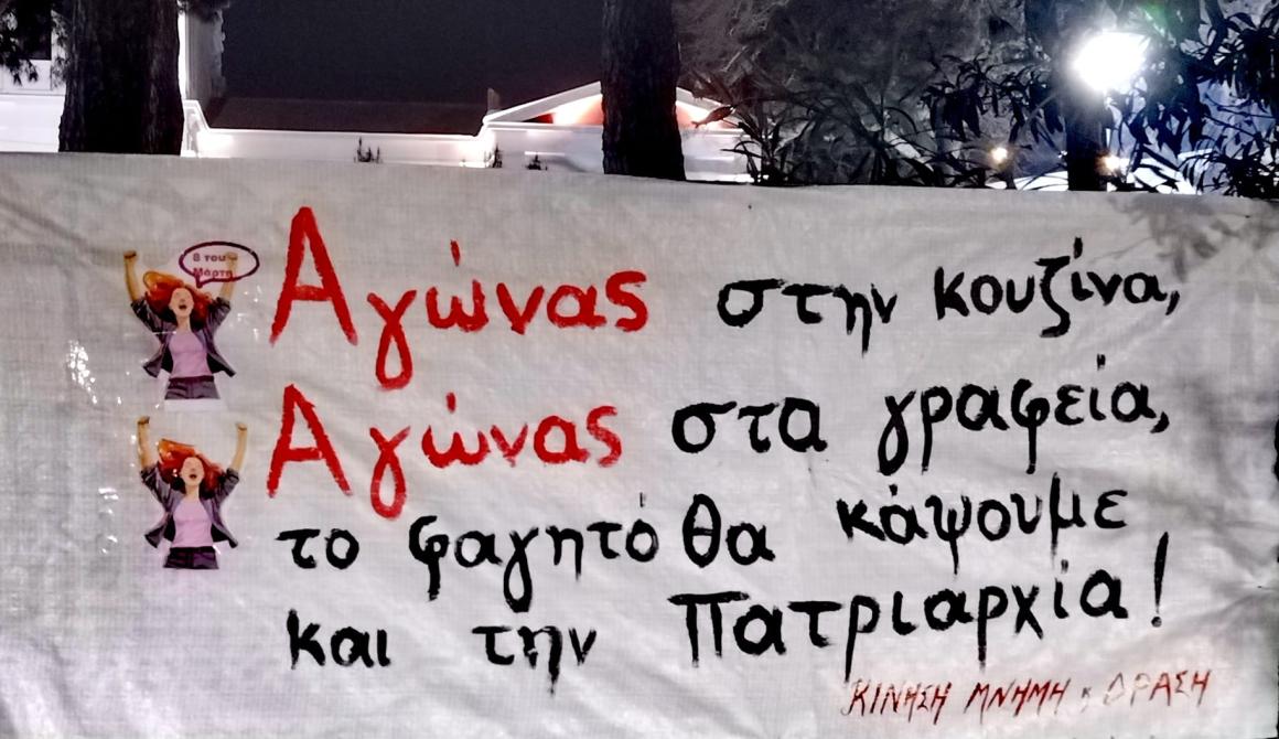 Στη Μυτιλήνη είμαστε καλοφαγάδες γι αυτό δεν ανεχόμαστε ούτε ένα σύνθημα που να προσβάλλει το τσ' κάλι . Έτσι , μάλλον, εξηγείται το άμεσο κατέβασμα του πανο της Κίνησης Μνήμη και Δράση με το σύνθημα :" ΑΓΩΝΑΣ ΣΤΗΝ ΚΟΥΖΊΝΑ , ΑΓΩΝΑΣ ΣΤΑ ΓΡΑΦΕΙΑ , ΤΟ ΦΑΓΗΤΟ ΘΑ ΚΑΨΟΥΜΕ ΚΑΙ ΤΗΝ ΠΑΤΡΙΑΡΧΙΑ"