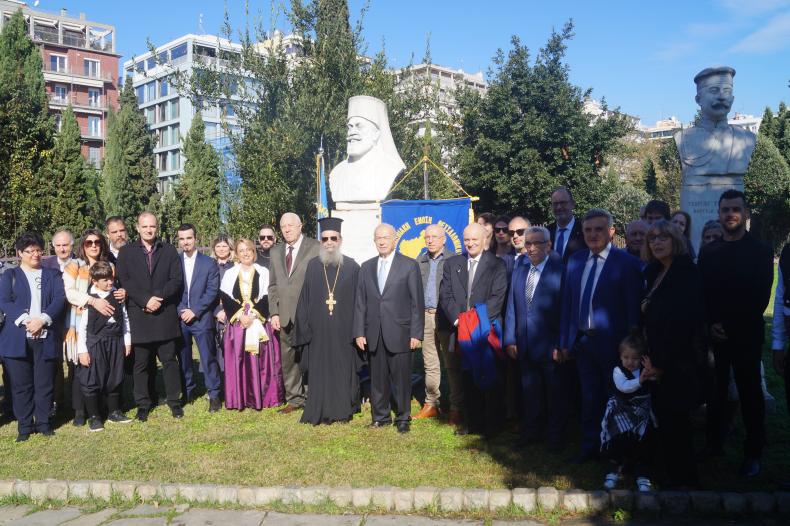 Ακολούθησε επιμνημόσυνη δέηση από τον συμπατριώτη μας ιερέα Παπά-Δημήτρη Θεοδώρου στη προτομή του συμπατριώτη μας από την Στύψη Δεσπότη και Μακεδονομάχου Γερμανού Καραβαγγέλη, στη Πλατεία Αριστοτέλους και κατάθεση στεφάνου από τον πρόεδρο του συλλόγου μας, τήρηση ενός λεπτού σιγή και απαγγελία του Εθνικού μας Ύμνου από όλους τους παρευρισκομένους.