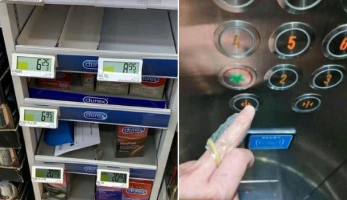 Φωτογραφίες που ανεβάζουν χρήστες των social media από την Αυστραλία και τη Σιγκαπούρη απεικονίζουν τα άδεια από προφυλακτικά ράφια στα σουπερμάρκετ.