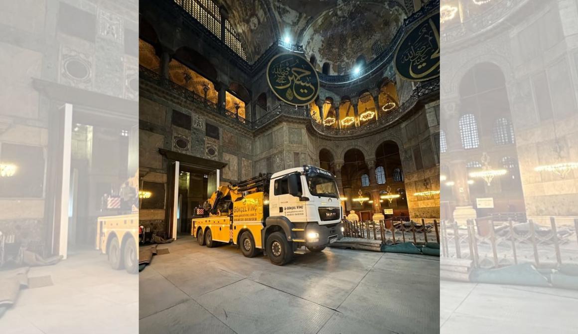 Η εικόνα ενός βαρέος γερανοφόρου οχήματος να πατά στο δάπεδο της Αγίας Σοφίας δεν πέρασε απλώς από τα timelines των κοινωνικών δικτύων· άναψε φωτιές. Το ιστορικό μνημείο των 1.486 ετών, σύμβολο πίστης, πολιτισμού και παγκόσμιας κληρονομιάς, βρέθηκε στο κέντρο μιας θύελλας ανησυχίας όταν φωτογραφίες το έδειξαν να φιλοξενεί βαριά μηχανήματα στο εσωτερικό του, πάνω σε πρόχειρες – όπως εξηγούν ειδικοί – προστατευτικές πλάκες.