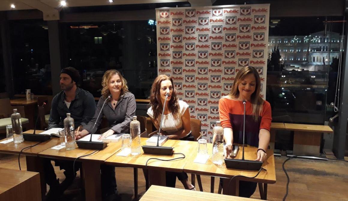 φωτο: Από την κεντρική παρουσίαση του μυθιστορήματος στο Public Συντάγματος, τη Δευτέρα 2 Οκτωβρίου 2017. Από αριστερά: Λευτέρης Ελευθερίου, Ράνια Μπουμπουρή, Βανέσα Αδαμοπούλου και Ελένη Καρακάση.