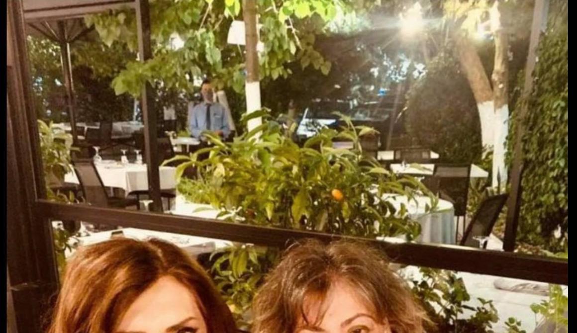 Με πολύ καλή διάθεση έφτασε σε καφετέρια του νησιού παρέα με την φίλη της και σύζυγο του περιφερειάρχη βορείου Αιγαίου, Κώστα Μουτζούρη, Δήμητρα.