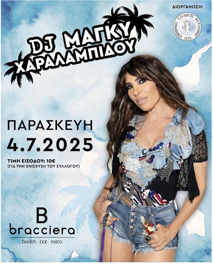 Το καλοκαίρι στη Μυτιλήνη ξεκινά δυναμικά — και μάλιστα με τον πιο εκρηκτικό τρόπο! Παρασκευή 4 Ιουλίου 2025, το Bracciera beach bar & restaurant μετατρέπεται στο απόλυτο σημείο συνάντησης για ντόπιους και επισκέπτες, φιλοξενώντας την εκρηκτική DJ Μάγκυ Χαραλαμπίδου σε ένα καυτό πάρτι δίπλα στο κύμα.