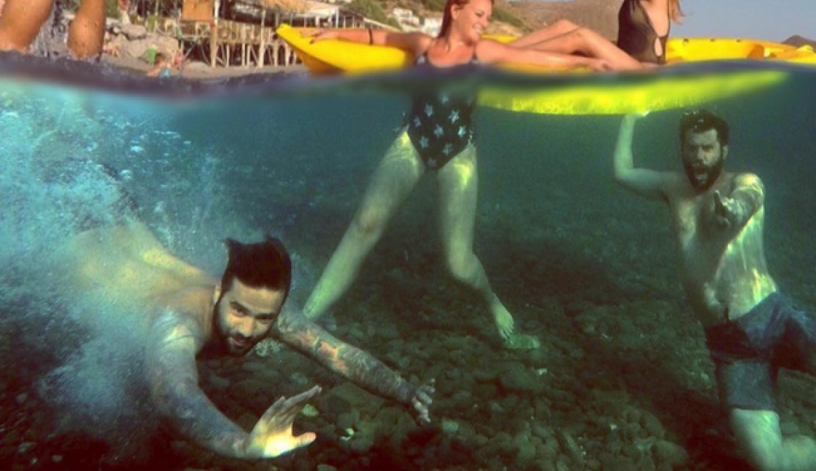 Η παρουσιάστρια και σχεδιάστρια ρούχων ανέβασε στο Instagram, μία φωτογραφία από την εξόρμησή τους στη θάλασσα. Πρόκειται για μία υποβρύχια λήψη που δείχνει το ζευγάρι τόσο έξω όσο και μέσα στη θάλασσα.