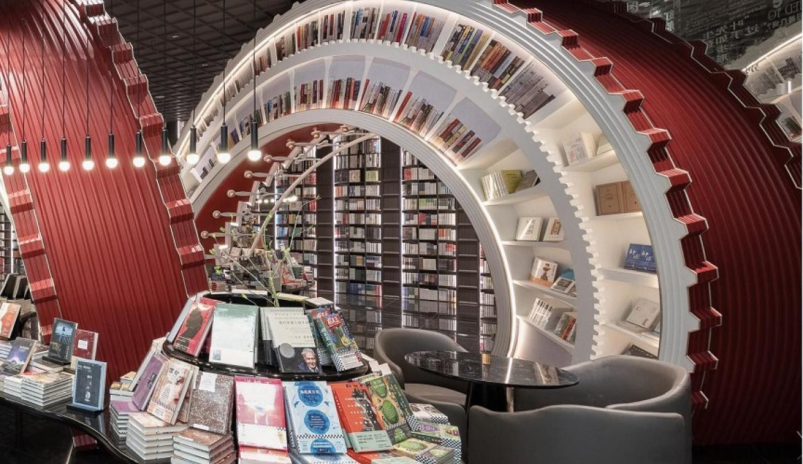Μια πλαγιασμένη στο πάτωμα σπειροειδής σκάλα λειτουργεί ως ράφια του βιβλιοπωλείου Shenzhen Zhongshuge, το οποίο σχεδίασε το αρχιτεκτονικό γραφείο X+Living στη συνοικία Τσιανχάι Οκτ της κινεζικής πόλης Σενζέν. Έμπνευση για τον σχεδιασμό της σκάλας, η οποία διασχίζει όλον τον χώρο του βιβλιοπωλείου, συνδέοντας την είσοδο με την έξοδο, ήταν τα επιτεύγματα και η ιστορία της πόλης.