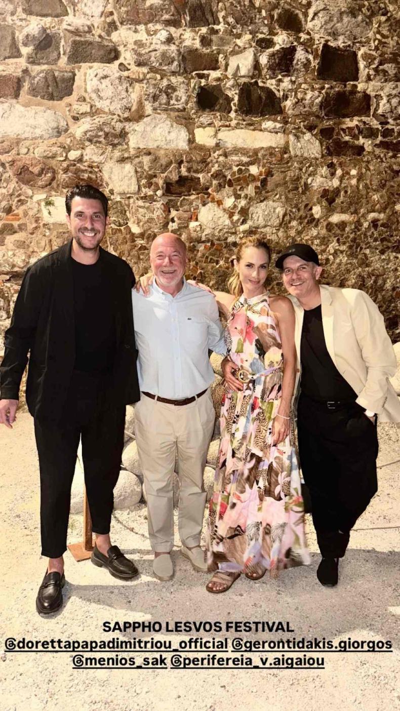 Μια ανάσα από το Αιγαίο, κάτω από το επιβλητικό Κάστρο της Μυτιλήνης, η Ντορέττα Παπαδημητρίου και ο Γιώργος Γεροντιδάκης έζησαν μερικές από τις πιο ξεχωριστές στιγμές τους, τόσο σε προσωπικό όσο και σε επαγγελματικό επίπεδο. Το ζευγάρι, που εδώ και μήνες κρατά διακριτικά τη σχέση του μακριά από τα φώτα της δημοσιότητας, βρέθηκε στη Λέσβο για να συμμετάσχει στο «2ο Φεστιβάλ Σαπφούς» — έναν πολιτιστικό θεσμό που τιμά την ιστορία και τον πολιτισμό του νησιού.