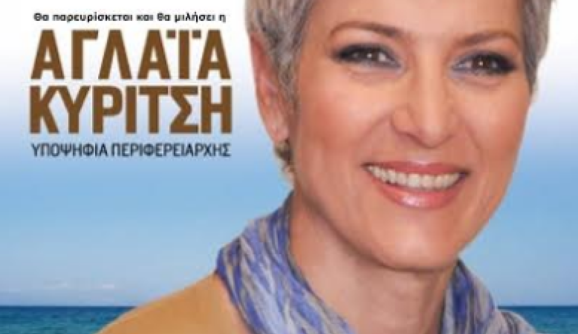 Θα μιλήσει η υποψήφια Περιφερειάρχης του συνδυασμού Βόρειο Αιγαίο –Γόνιμη Γραμμή Αγλαΐα Κυρίτση. Θα επακολουθήσει Λαϊκή συναυλία με τον Δημήτρη Μαυράκη.