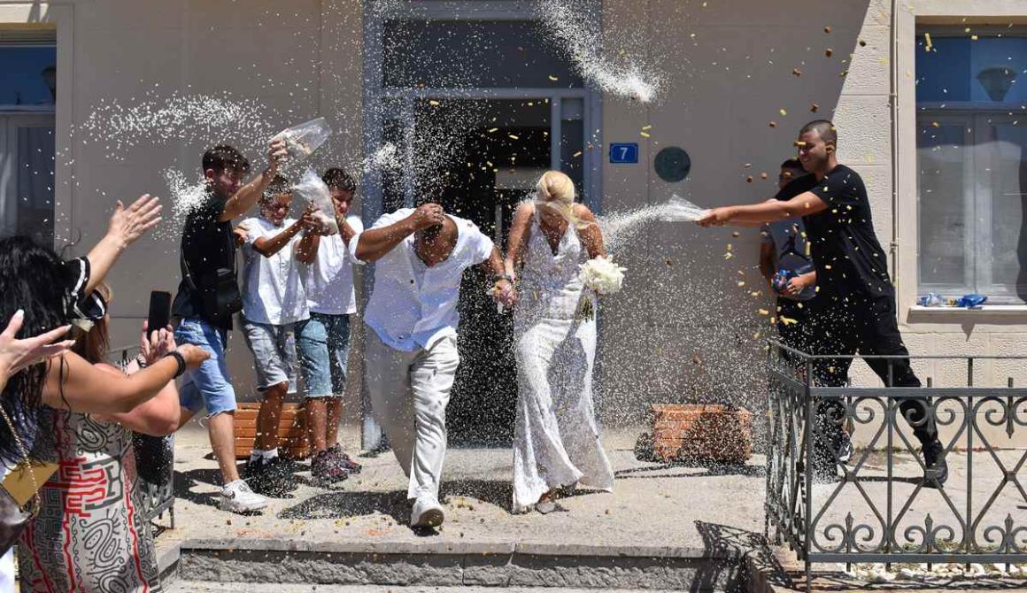 Οι φίλοι του γαμπρού, που έχει το ψευδώνυμο Πλανητάρχης ή Μάνικας, πετούσαν στο ζευγάρι ρύζι, κοφτό μακαρονάκι και ξηρά σκυλοτροφή!