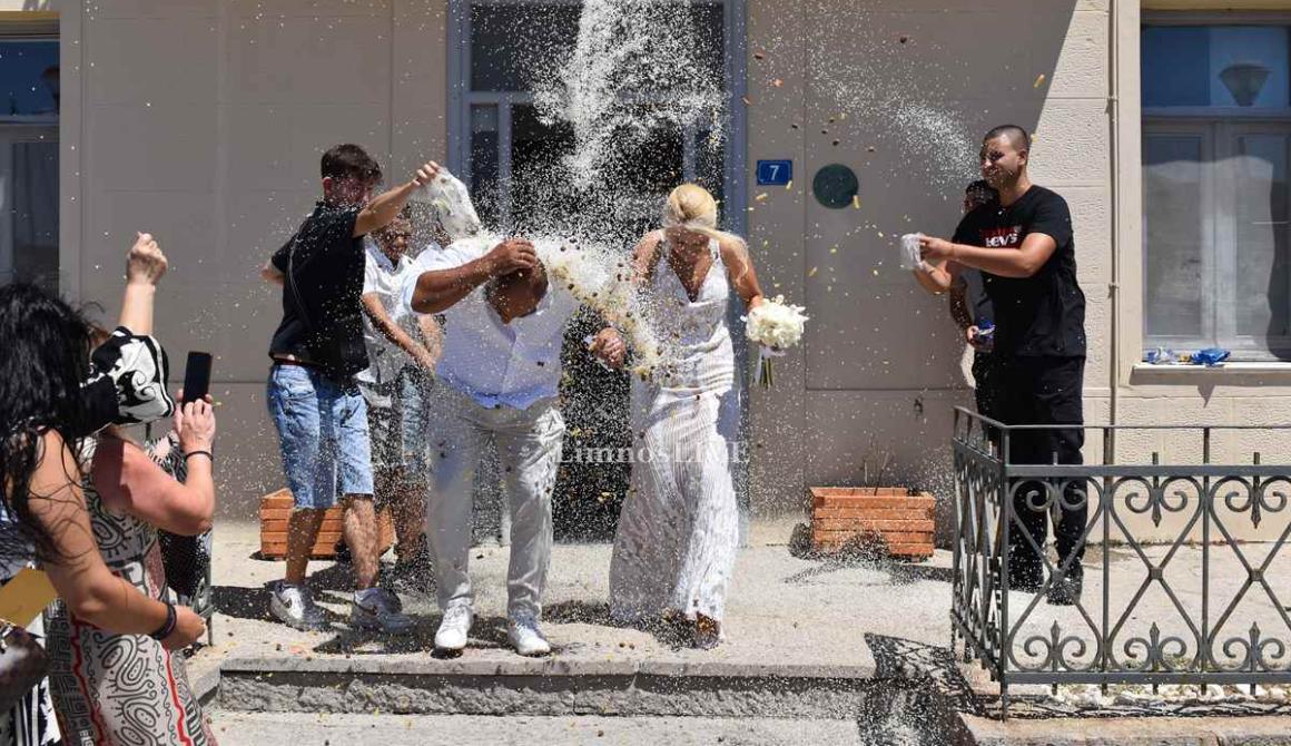 Τον γύρο του διαδικτύου κάνουν οι εικόνες από έναν γάμο στην Λήμνο. Την ώρα που το ζευγάρι έβγαινε από το δημαρχείο, το περίμενε μία έκπληξη.
