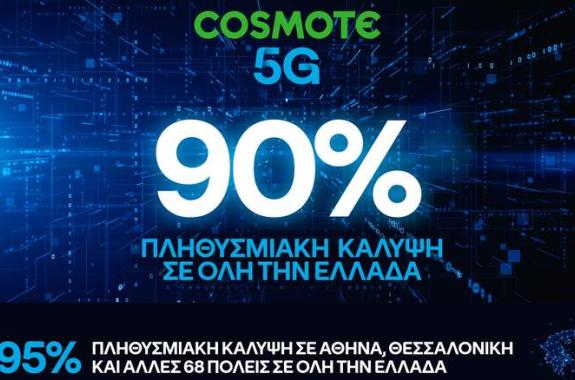 Έφτασε το 90% η πανελλαδική πληθυσμιακή κάλυψη του COSMOTE 5G, του μεγαλύτερου 5G δικτύου της χώρας, με την COSMOTE να πετυχαίνει, πολύ νωρίτερα, τον φιλόδοξο στόχο που είχε θέσει για το τέλος του 2023. H πληθυσμιακή 5G κάλυψη έχει μάλιστα ξεπεράσει το 95% σε Αθήνα, Θεσσαλονίκη κι άλλες 68 πόλεις σε...