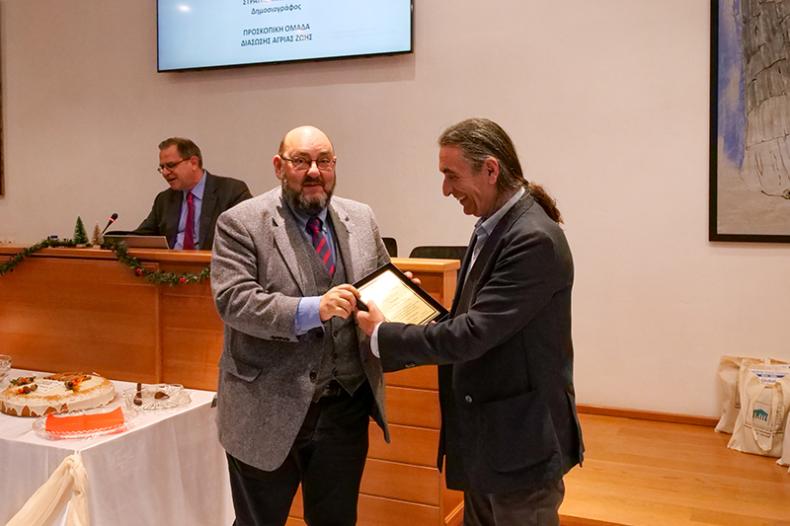 Ακολούθησε απονομή τιμητικής πλακέτας στον δημοσιογράφο Στρατή Μπαλάσκα, για την συμβολή του στην προβολή του Μουσείου και των δράσεών του στα ΜΜΕ πανελλήνιας εμβέλειας.