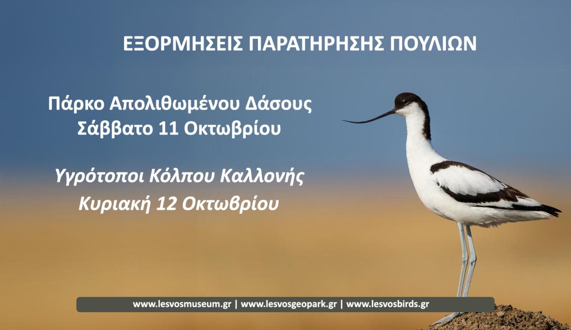 Το Σάββατο 4 Οκτωβρίου πραγματοποιήθηκε περιήγηση και παρατήρηση πουλιών και της πλούσιας φύσης στο Πάρκο Απολιθωμένου Δάσους με τα στελέχη του Μουσείου Φυσικής Ιστορίας Απολιθωμένου Δάσους Λέσβου και του Κέντρου Περιβαλλοντικής Ενημέρωσης Καλλονής.