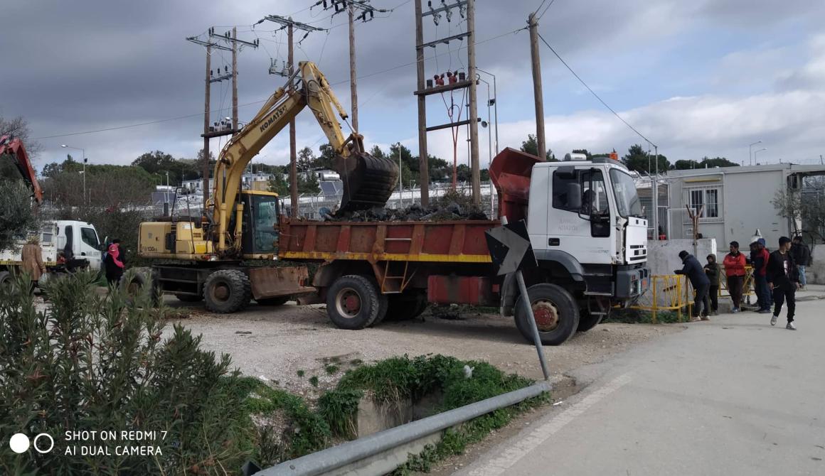 Μετά από συνεργασία της Αντιδημαρχίας Καθαριότητας και του αρμόδιου Αντιδημάρχου, Στρατή Δαγκλή, με την Υπηρεσία Πολιτικής Προστασίας και του Εντεταλμένου Συμβούλου, Μιχάλη Φραντζέσκου, οι οποίοι έδωσαν το «παρών» για να συντονίσουν την επιχείρηση έξω από το ΚΥΤ Μόριας, και με την βοήθεια μίας περιστρεφόμενης τσάπας και δύο φορτηγών, πραγματοποιήθηκε η περισυλλογή τόνων σκουπιδιών που συσσωρεύονται συνεχώς πέριξ του ΚΥΤ, αλλά και μέσα σε ποτάμια.