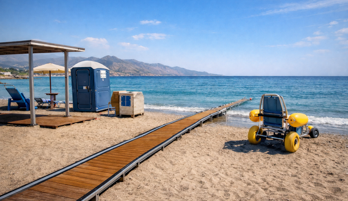- Εξοπλισμό προσβάσιμης παραλίας και ειδική σήμανση, προσαρμοσμένη στις ανάγκες των λουόμενων με αναπηρία.