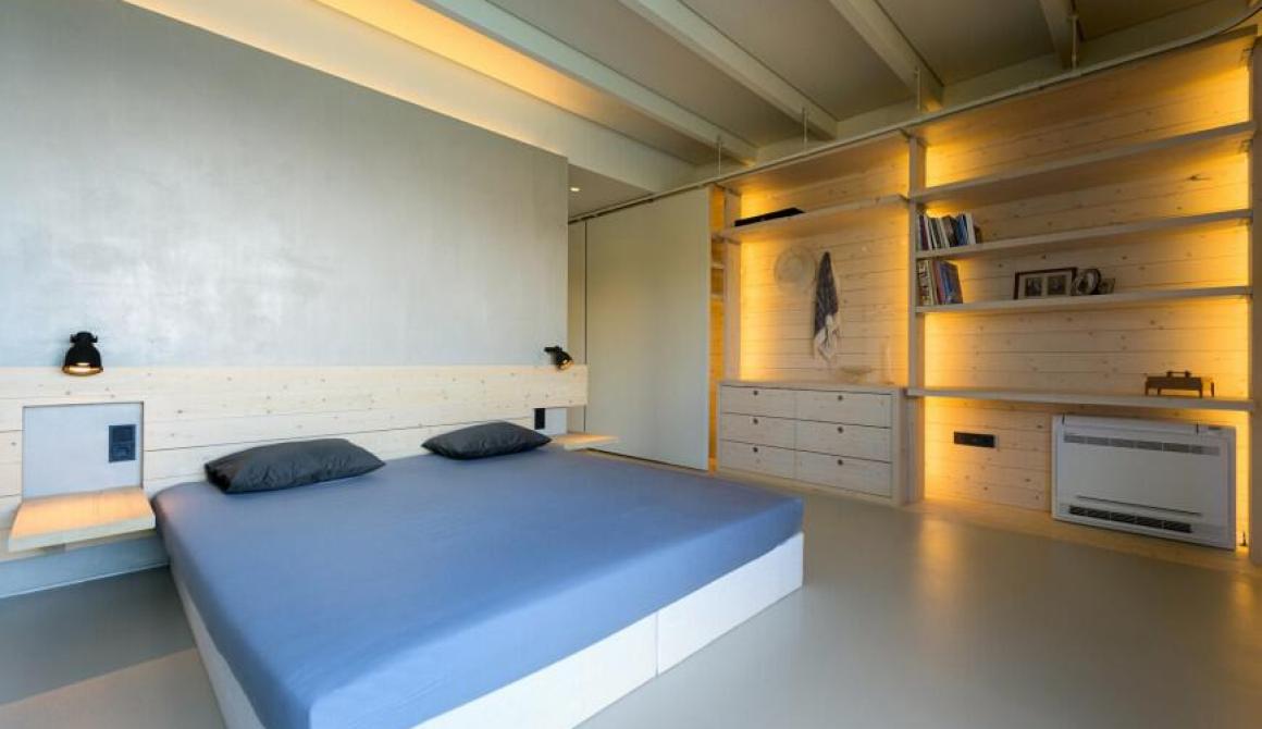 Οι κατοικίες τοποθετήθηκαν παράλληλα στις υψομετρικές καμπύλες, μεταξύ του τέλους του ελαιώνα και της αρχής του παραθαλάσσιου ανάγλυφου λειτουργώντας ως πέρασμα από τη γη στη θάλασσα. Η ζώνη αυτή επιτρέπει τη ροή του τοπίου και οριοθετείται με μια συμπαγή και μια ελαφριά πλευρά : η όψη προς τον ελαιώνα είναι πέτρινη με ανοίγματα που απομονώνουν στιγμιότυπα του τοπίου, ενώ η όψη που αντικρίζει τη θάλασσα είναι διάφανη και ενιαία. Το κτίριο μοιάζει να φύεται από το έδαφος προς την πλευρά του ελαιώνα και να ίπταται προς τη μεριά της θάλασσας. Οι κατοικίες είναι ισόγειες, έχουν επίμηκες ορθογώνιο σχήμα και έχουν σχεδιαστεί με βιοκλιματικές αρχές διαμπερότητας, αερισμού και σκίασης.