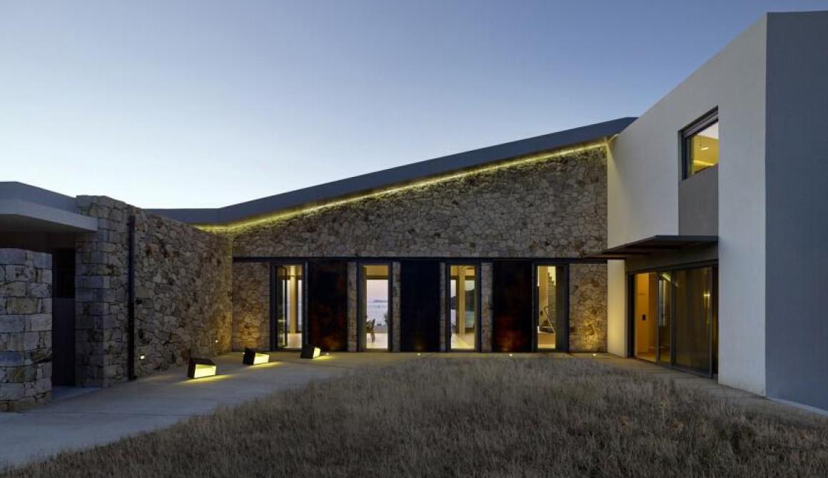 Προσεγγίζοντας και διασχίζοντας το οι χώροι ξεδιπλώνονται με κινηματογραφικά sequence ενώ η θάλασσα εμφανίζεται σταδιακά καθώς καδράρεται αρχικά μέσα από τον συμπαγή πέτρινο τοίχο της όψης, στη συνέχεια από τις σκιερές στοές και τις βαθιές βεράντες που προστατεύουν από τον ήλιο και τελικά η θέα της απελευθερώνεται στον πρόβολο πάνω από το γκρεμό.