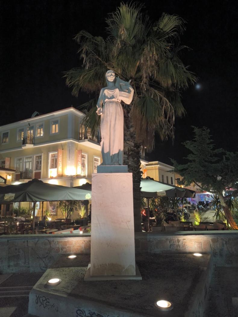 Μια μικρή, αλλά βαθιά συμβολική νίκη για τη Μυτιλήνη σημειώθηκε τις τελευταίες ώρες: το εμβληματικό άγαλμα της Σαπφούς στην καρδιά της πόλης, στην πλατεία που φέρει το όνομά της, φωτίστηκε ξανά έπειτα από πολλά χρόνια σκοτεινής παρουσίας.