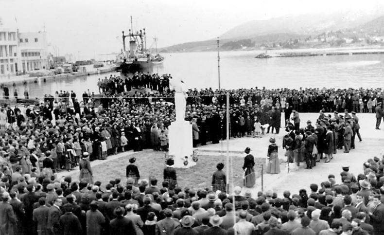 Τα αποκαλυπτήρια έγιναν στις 21 Μαρτίου 1965, Κυριακή, στις 5 το απόγευμα, από τον Υφυπουργό Γεωργίας Νικόλαο Μαλλιάκα, παρουσία πλήθους Μυτιληνιών που είχαν γεμίσει την πλατεία για να τιμήσουν το νέο σύμβολο της πόλης.