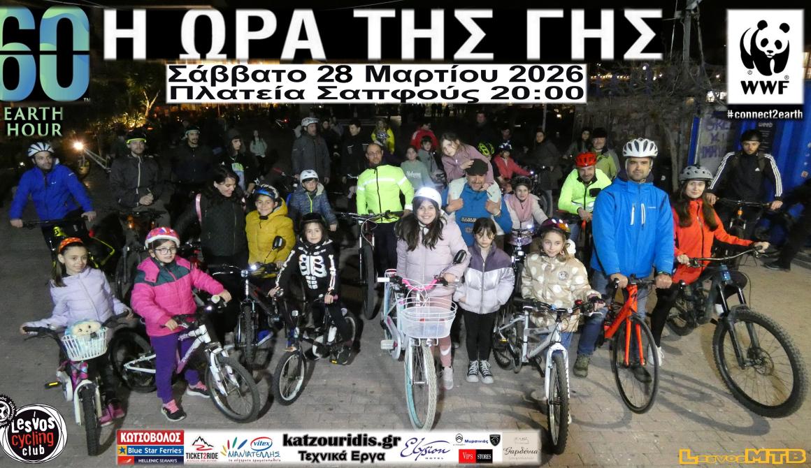 Ο Ποδηλατικός Σύλλογος Λέσβου (Πο.Συ. Λέσβου) καλεί τους φίλους του ποδηλάτου, του περιβάλλοντος και της βιώσιμης αστικής κινητικότητας, να πάρουν μέρος στην μεγαλύτερη συμμετοχική εκστρατεία ευαισθητοποίησης που υπήρξε ποτέ για την προστασία του πλανήτη μας, με την καθιερωμένη πλέον νυχτερινή ποδηλατοπορεία μας, στους δρόμους της Μυτιλήνης την ώρα που τα φώτα της πόλης θα είναι σβηστά! Μια παγκόσμια δράση που γίνεται κάθε χρόνο με σκοπό να ενημερώσει τους ανθρώπους για την κλιματική αλλαγή και να τους ενθαρρύνει να σβήσουν τα φώτα για μία ώρα ταυτόχρονα σε ολόκληρο τον πλανήτη, το Σάββατο 28 Μαρτίου 2026 και να δείξουν ότι ενδιαφέρονται για το μέλλον του πλανήτη μας.
