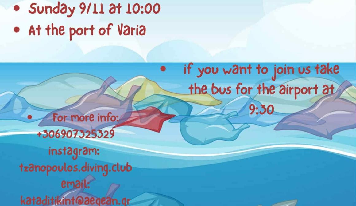Την Κυριακή 9 Νοεμβρίου, στις 10:00 το πρωί, η Φοιτητική Καταδυτική Ομάδα του Πανεπιστημίου Αιγαίου “Νικόλαος Τζανόπουλος” σε συνεργασία με την Εθελοντική Πράσινη Ομάδα του Ιδρύματος, πραγματοποιούν δράση καθαρισμού στο Λιμανάκι της Βαρειάς.