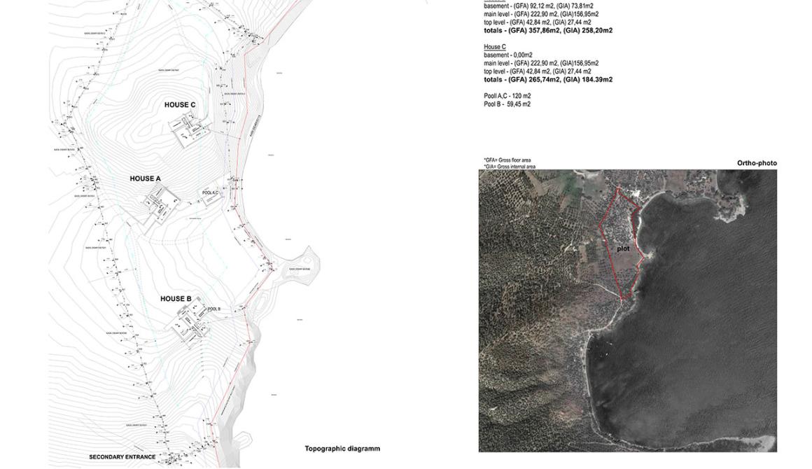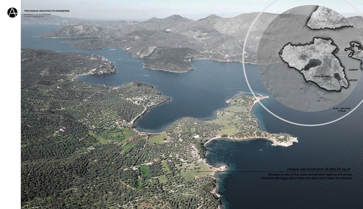 Το έργο αφορά στο σχεδιασμό τριών παραθεριστικών κατοικιών στη θέση Φτέλι, στην είσοδο του κόλπου Γέρας, στη Λέσβο. Το γήπεδο, επιφανείας 35 στρεμμάτων, βρίσκεται σε μοναδική τοποθεσία, με εκτενές παραλιακό πρόσωπο, ενδιαφέρουσα βλάστηση, κυρίως ελαιόδεντρα και αυτοφυής θάμνους, και ποικίλο φυσικό ανάγλυφο (πεδιάδες – λόφοι).