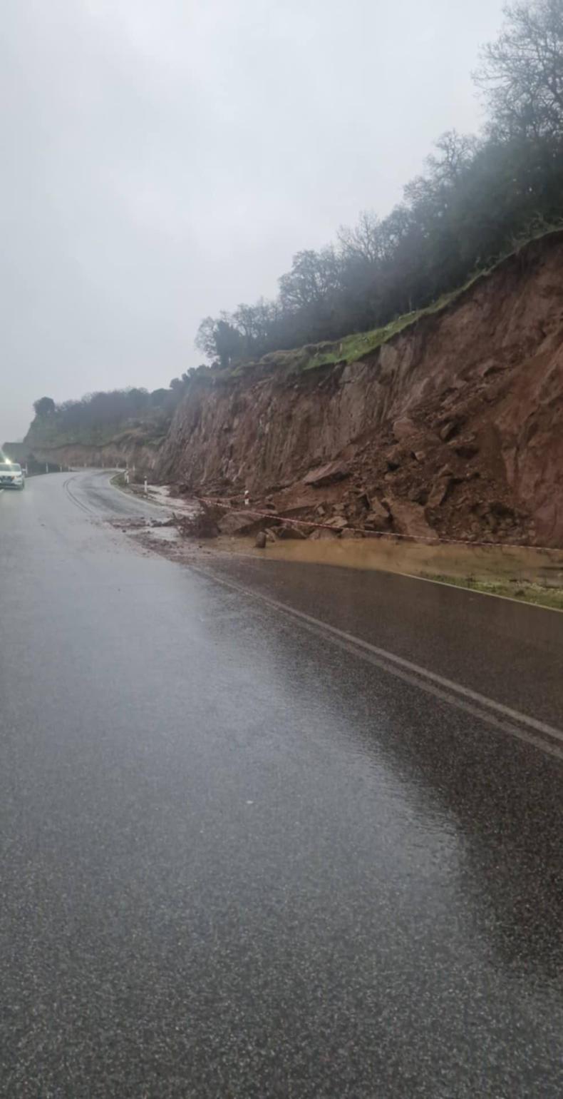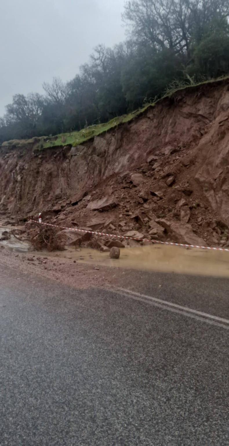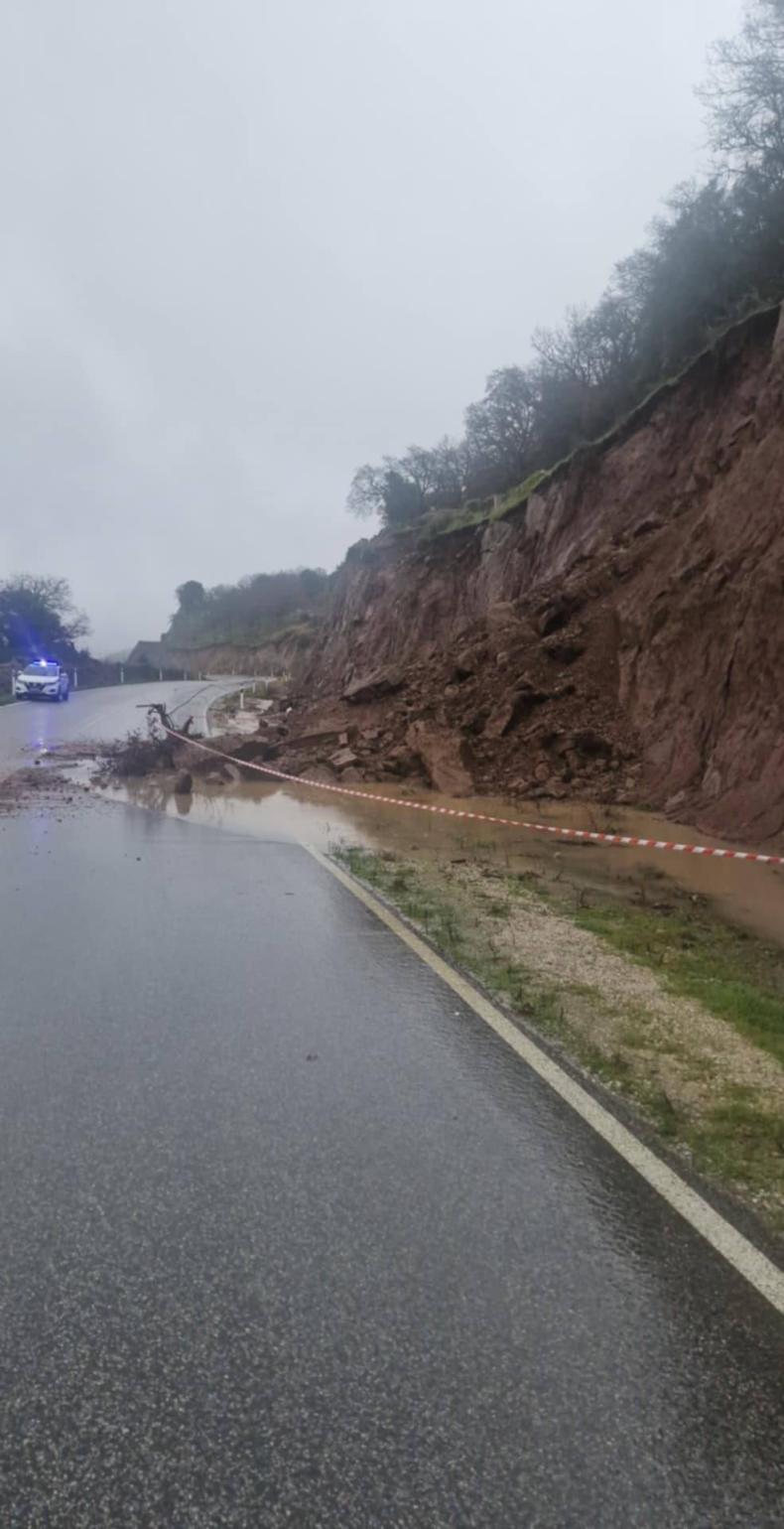 Στο σημείο έχουν πέσει βράχια και χώματα από το πρανές, ενώ στο οδόστρωμα έχουν συγκεντρωθεί νερά και φερτά υλικά, περιορίζοντας σημαντικά το πλάτος του δρόμου και αυξάνοντας τον κίνδυνο ατυχήματος.