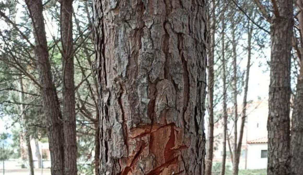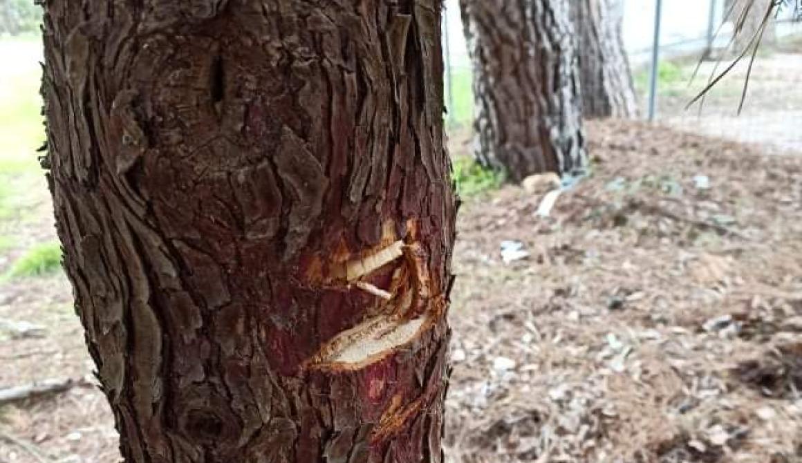 Μια απίστευτη εικόνα αντικρίζουν τις τελευταίες ημέρες ο Πρόεδρος του Δ.Δ. Κεραμίου Μπάγκαλας Βασίλειος καθώς και εργάτες του Δήμου Δυτικής Λέσβου σε αλσύλλιο πλησίον του Δημοτικού Σχολείου Κεραμίου, όπου άγνωστος έχει κόψει αλλά και πληγώσει πεύκα με τσεκούρι!