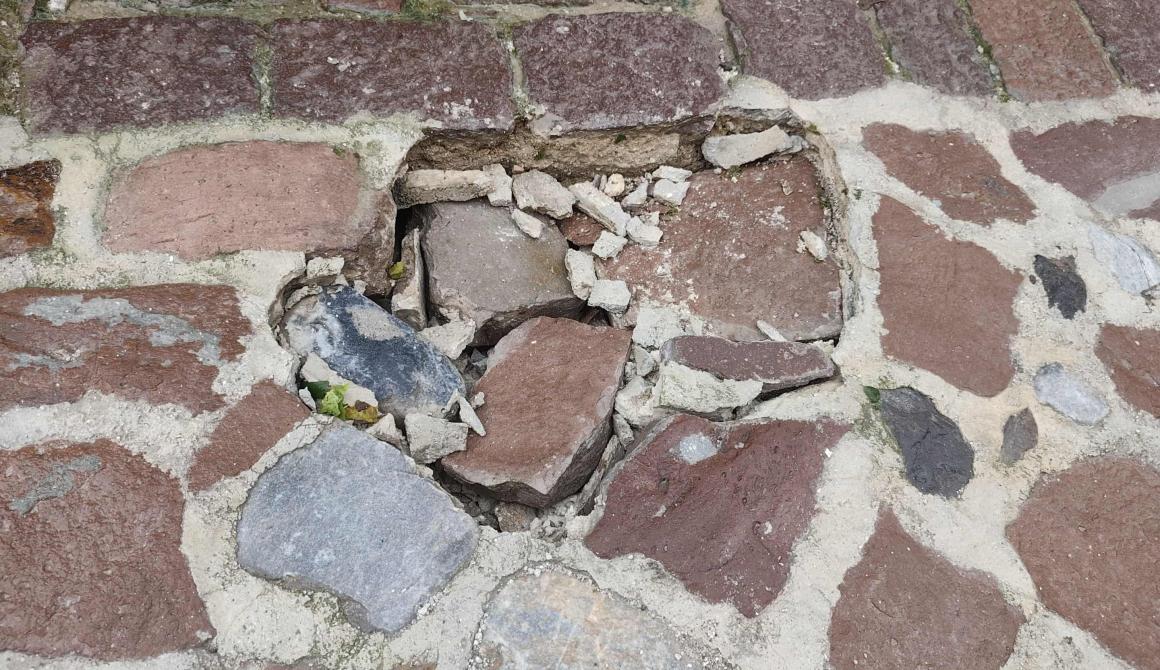 Μυτιλήνη: Ξανά υποχώρησε το «καινούργιο» λιθόστρωτο στην οδό Αγίων Θεοδώρων