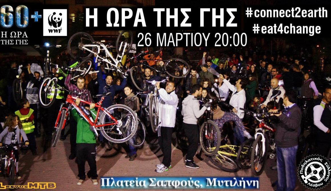 Φέτος το ραντεβού μας είναι 26 Μαρτίου και ώρα 20:00 στη Πλατεία Σαπφούς για την καθιερωμένη ποδηλατοπορεία αφιερωμένη στην ΩΡΑ ΤΗΣ ΓΗΣ.