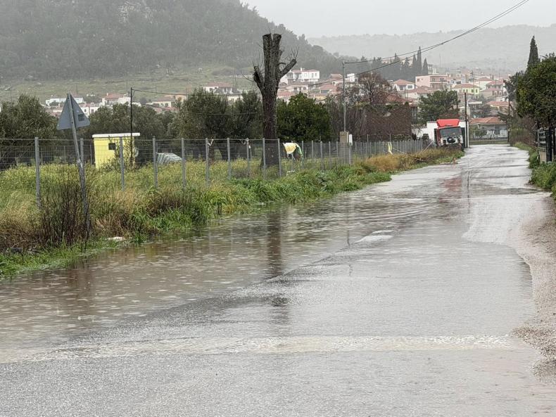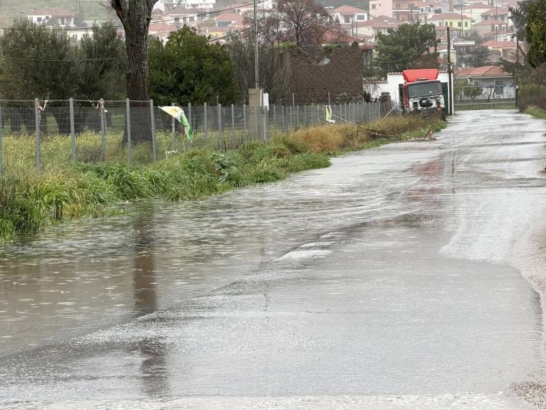 Παγίδα νερού στον δρόμο Καλλονής–Δαφίων: Καλύφθηκε το ένα ρεύμα κυκλοφορίας