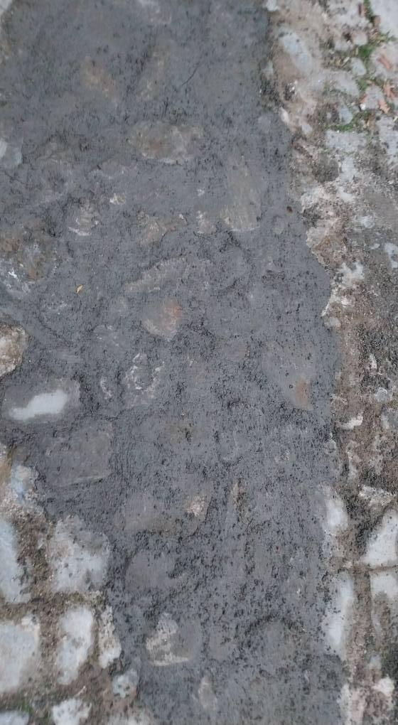 Οι φωτογραφίες που συνοδεύουν την ανάρτηση δείχνουν μπαλώματα με τσιμέντο πάνω στα παραδοσιακά καλντερίμια — μια εικόνα που προκαλεί θλίψη για έναν τόπο με μακραίωνη αρχιτεκτονική ταυτότητα και αυθεντικότητα.