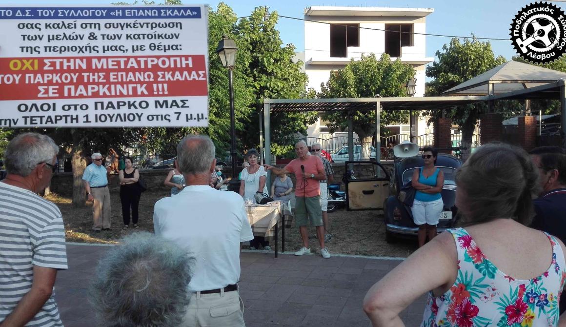 Την Τετάρτη 1η Ιουλίου 2020 στις 19:00 το απόγευμα συγκεντρώθηκαν στο πάρκο της Επάνω Σκάλας γνωστό με το όνομα "Παιδική Χαρά" περίοικοι, κάτοικοι της ευρύτερης περιοχής αλλά και πολίτες της Μυτιλήνης που είναι αντίθετοι στην επιθυμία του Δήμου να μετατρέψει την Παιδική Χαρά σε χώρο στάθμευσης!