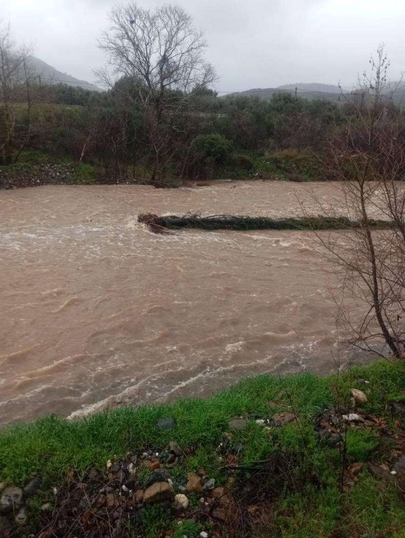 Ορμητικά νερά στον Ευεργέτουλα και ξεριζωμένο κυπαρίσσι απειλούν να φράξουν τις γέφυρες σε Κεραμειά και Λάρσο. Έκκληση για άμεση παρέμβαση.