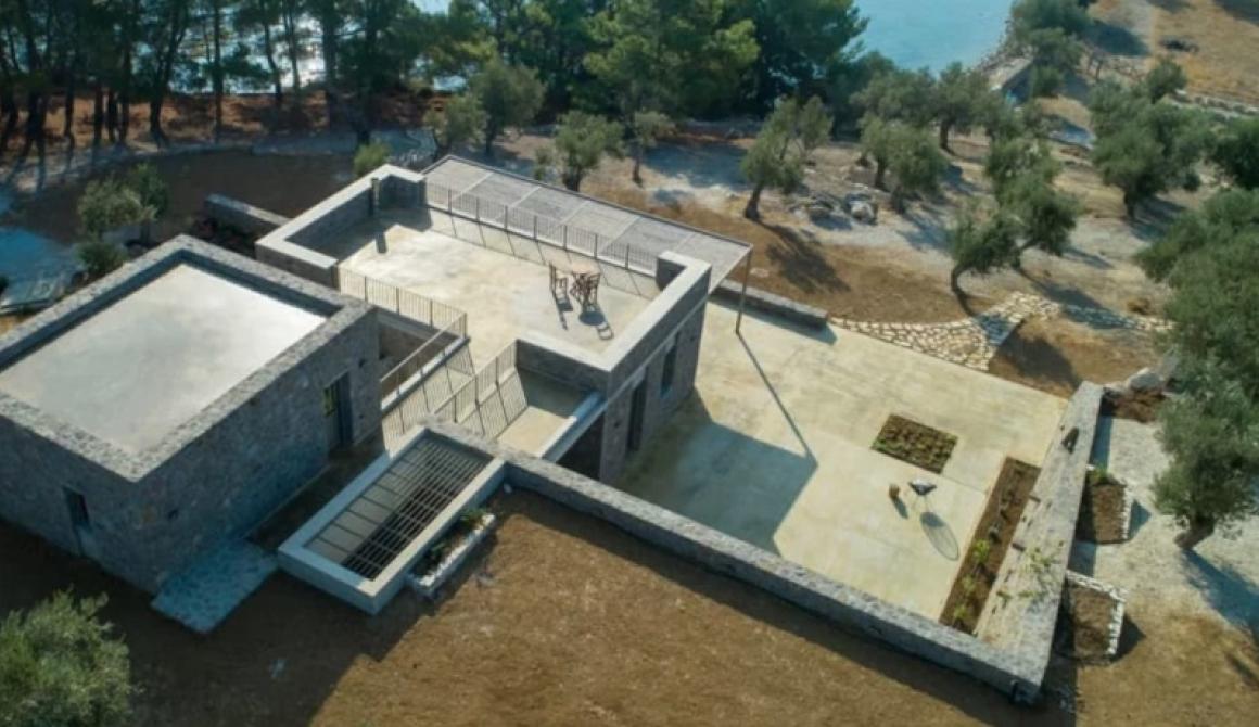 Το έργο, που φέρει την υπογραφή του αρχιτεκτονικού γραφείου Trichonas Architecture, έχει σχεδιαστεί για δύο οικογένειες που διατηρούν στενή φιλία και επιθυμούσαν να απαλλαγούν από το βάρος της σύγχρονης αστικής ζωής δημιουργώντας έναν χώρο για διακοπές και ξεκούραση. Και τι καλύτερο από τον κόλπο της Γέρας, μια περιοχή κατάφυτη από ελαιώνες και, φυσικά, θάλασσα!