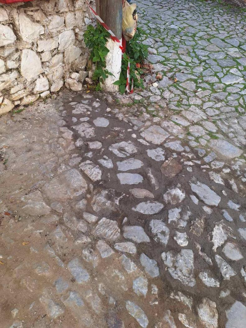 Ο κ. Πολυπαθέλλης συνοδεύει την νέα ανάρτησή του με δεκάδες φωτογραφίες, που –όπως ισχυρίζεται– αποτυπώνουν τσιμεντώματα πάνω στα παραδοσιακά λιθόστρωτα του χωριού.