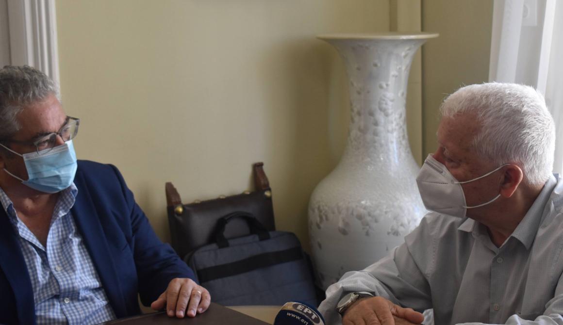 «Με χαρά συναντώ τον Γενικό Γραμματέα του ΚΚΕ, που βρίσκεται στη Λέσβο με αφορμή τις εκδηλώσεις της Νεολαίας του κόμματος που ηγείται,» τόνισε ο Περιφερειάρχης υποδεχόμενος τον κ. Κουτσούμπα , ο οποίος με τη σειρά του εξέφρασε τη χαρά και ικανοποίηση του ,για την επιτυχία των εκδηλώσεων του τριημέρου. Παράλληλα απηύθυνε προς τον Περιφερειάρχη, τις ευχαριστίες του για την οικονομική ενίσχυση των εκδηλώσεων από την Περιφέρεια, μέσω οικονομικής ενίσχυσης των τοπικών επιχειρήσεων, για υπηρεσίες που παρείχαν στο πλαίσιο των εκδηλώσεων και που μετά τις επιπτώσεις των πολύμηνων Lockdown λόγω της Πανδημίας αναμένεται να ενισχυθεί σημαντικά η τοπική οικονομία της Λέσβου, αφού στο νησί βρίσκονται περίπου 4.000 επισκέπτες, νεολαία από όλη την Ελλάδα σε μια περίοδο που ο εξωτερικός τουρισμός βάλλεται παγκοσμίως.