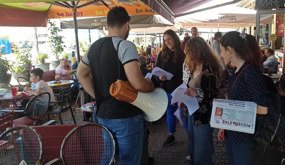 Σήμερα το πρωί, κλιμάκιο συντρόφων και συντροφισσών, μοίρασε την ανακοίνωση του Γραφείου Τύπου της ΚΕ του ΚΚΕ, για την κλιμάκωση του πολέμου στη Μέση Ανατολή. Κάλεσε τον λαό της πόλης να δυναμώσει τη λαϊκή απαίτηση προς την κυβέρνηση της ΝΔ, να αποσύρει την στήριξη της στο κράτος-δολοφόνο του Ισραήλ, να απεμπλακεί άμεσα η χώρα μας από τους ιμπεριαλιστικούς πολέμους, να επιστρέψει η φρεγάτα «Ύδρα» από την επιχείρηση ΑΣΠΙΔΕΣ της ΕΕ στην Ερυθρά Θάλασσα.