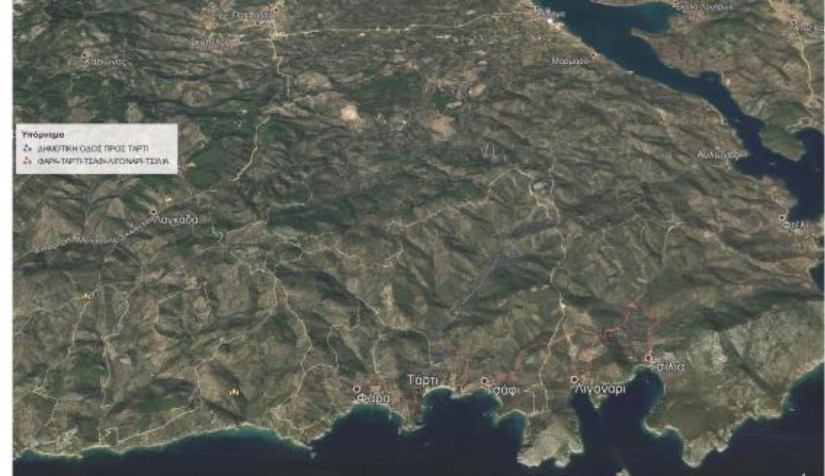 - Από Φαρά - Τάρτι – Τσάφι - Λιγονάρι μέχρι Τσίλια, στο Κεντρικό Νότιο τμήμα του νησιού εντός των ορίων της Δημ. Ενότητας Γέρας, συνολικού μήκους 6.400 μ.