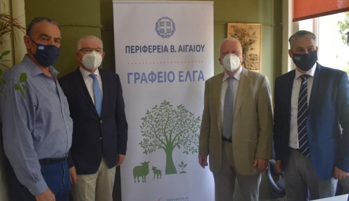 Τον Πρόεδρο του Οργανισμού Ελληνικών Γεωργικών Ασφαλίσεων (ΕΛΓΑ) Ανδρέα Λυκουρέντζο, υποδέχτηκε στην Μυτιλήνη χτες 30.06.2021 ο Περιφερειάρχης Βορείου Αιγαίου Κωνσταντίνος Μουτζούρης.