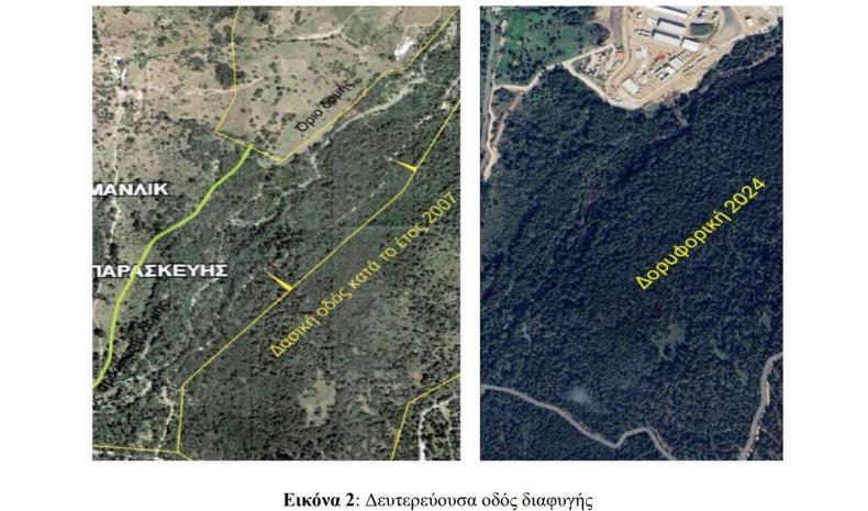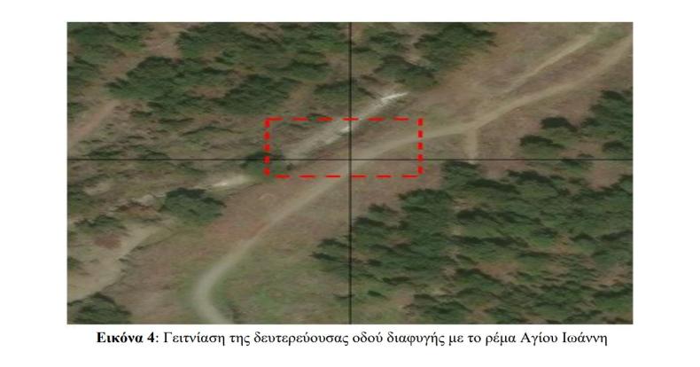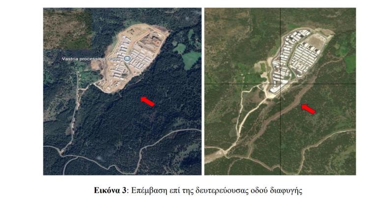 Η μελέτη υποστηρίζει ότι υπάρχει «προϋφιστάμενη δασική οδός» που θα χρησιμοποιηθεί ως έξοδος σε περίπτωση ανάγκης.