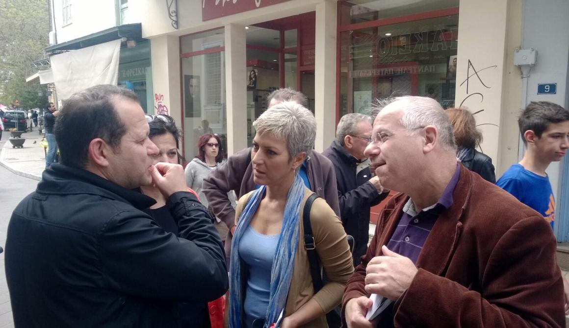 Πρώτος σταθμός, η κεντρική αγορά της πόλης όπου η υποψήφια περιφερειάρχης είχε την ευκαιρία να επισκεφτεί δεκάδες καταστήματα και να ενημερωθεί για τον οικονομικό μαρασμό που βιώνει ο εμπορικός κόσμος, όπως αυτός εκφράστηκε από τους ιδιοκτήτες, αλλά και τους εργαζόμενους στον κεντρικό δρόμο της περιοχής. Κοινός προβληματισμός των καταστηματαρχών αποτελεί η καταστροφική πολιτική των μνημονίων που έχει φέρει σε αδιέξοδο και τη μεσαία τάξη στη Λέσβο.