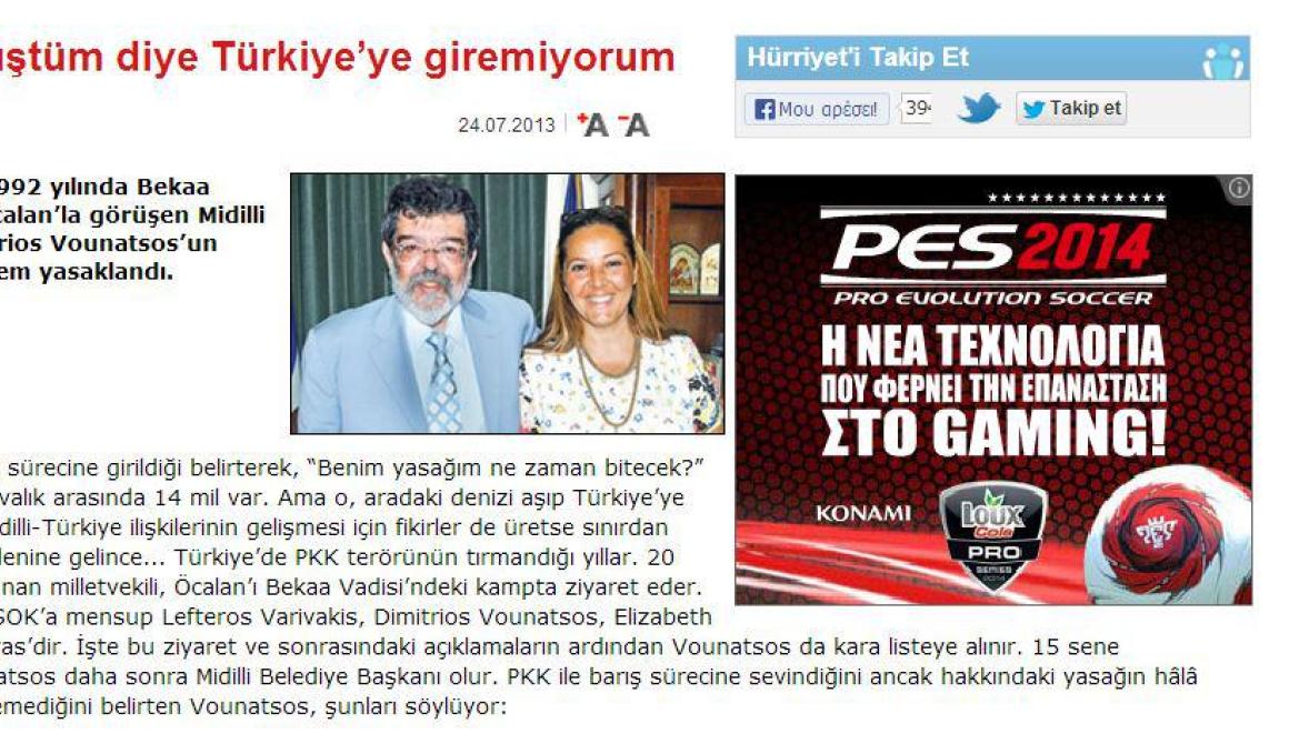 Το πλήρες κείμενο του ρεπορτάζ για το Δημήτρη Βουνάτσο στη χθεσινή «Χουρριέτ»