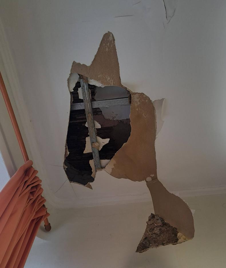 Προς το τέλος του Ιανουαρίου με καθυστέρηση αρκετών μηνών επιτέλους έγινε η επισκευή των σοβάδων της εισόδου. Για τα προβλήματα της στέγης δεν έγινε καμία ενέργεια με αποτέλεσμα χθες 2/2/2026 τα ξημερώματα να :