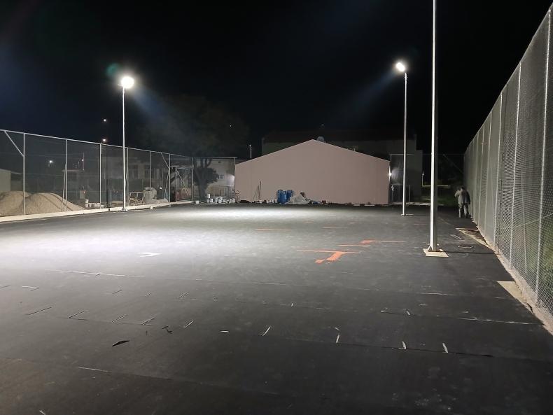 Παράλληλα, προχωρούν με ταχύτατους ρυθμούς τα έργα για το γήπεδο της Άγρας και το γήπεδο τένις στην Αρίσβη, όπου ήδη έχει τοποθετηθεί ο φωτισμός.